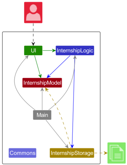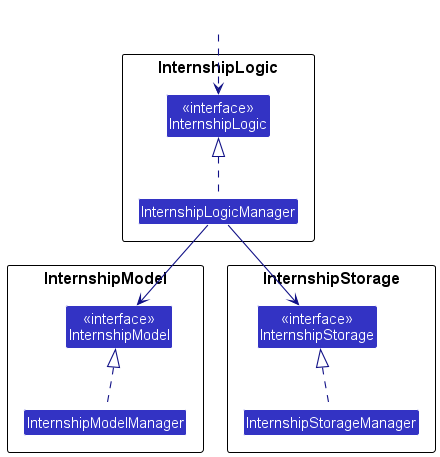 InternshipLogiccomponent, because theUIrelies on theInternshipLogicto execute commands. - depends on some classes in the