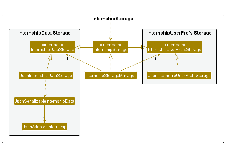 InternshipDataStorageandInternshipUserPrefsStorage, which means it can be treated as either one (if only the functionality of only one is needed). - depends on some classes in the